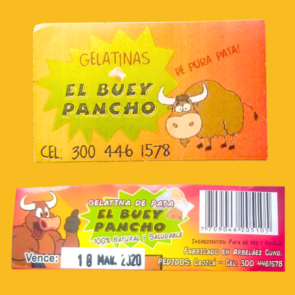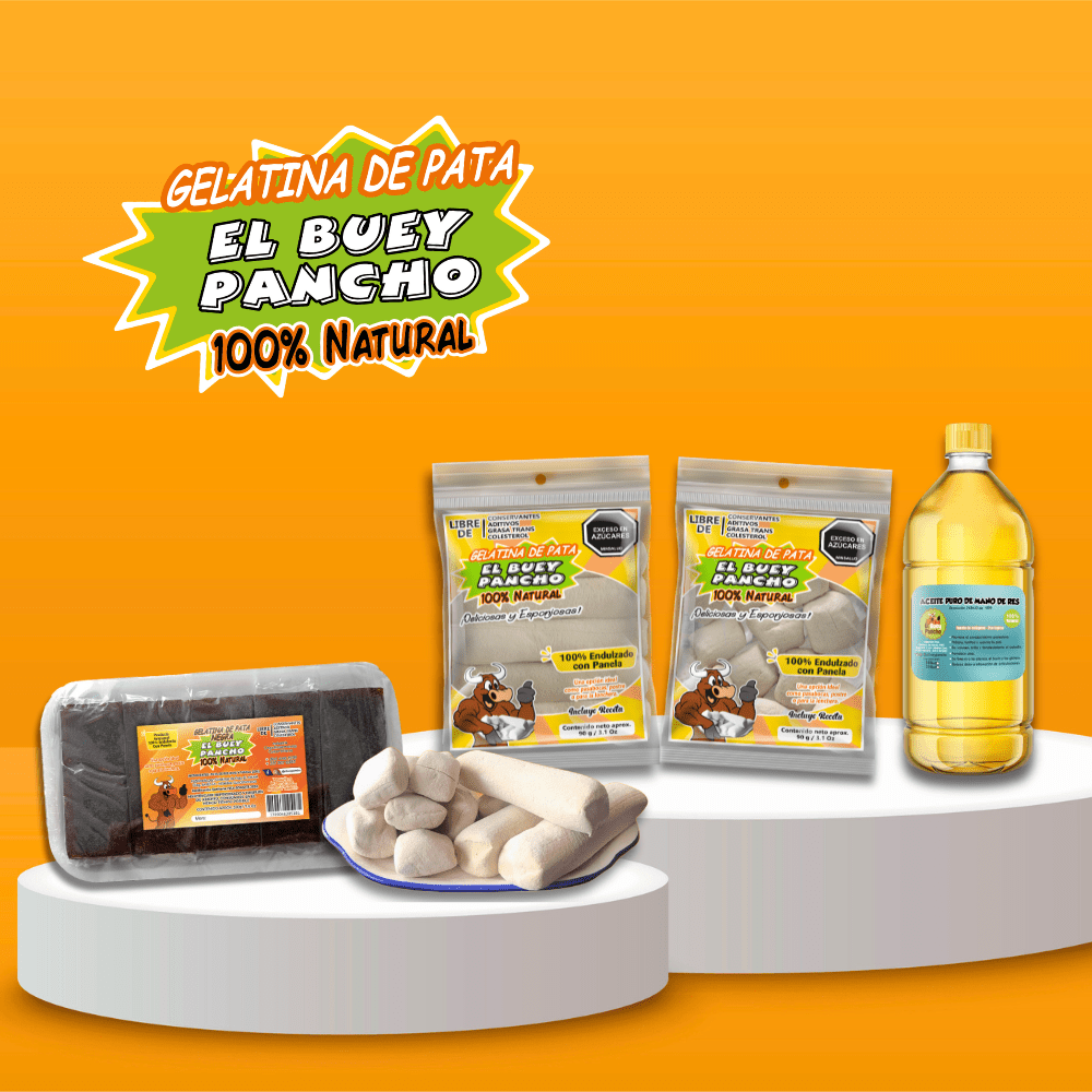 El Buey Pancho es una empresa colombiana con 10 años de trayectoria, dedicada a elaborar productos 100% naturales y saludables. Desde su planta en Arbeláez, Cundinamarca, distribuye a más de 8 municipios, fomentando el desarrollo local. Entre sus productos destacan: la Gelatina de Pata Tradicional, elaborada con pata de res y panela; la Gelatina de Pata Negra, con un mayor porcentaje de colágeno (80%) y un menor porcentaje de panela (20%); y el Aceite de Mano de Res, fuente de colágeno 100% puro, ideal para cuidado de la piel y articulaciones. Una marca comprometida con la calidad, la salud y el rescate de tradiciones. 🌿